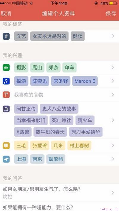 2、个人资料尽量多填,尤其职业,星座,公司等信息,更容易有话题。