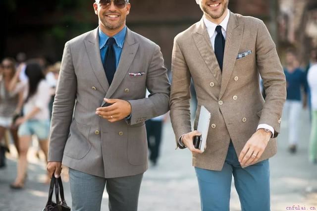 西装最好也是深色系,婷婷推荐双排扣西装,这是因为双排扣的设计,能将你的身体线条收紧,一旦你扣上扣子,它会立马让你变得苗条、得体,身姿自然 凹凸有致 ,更显挺拔矫健。