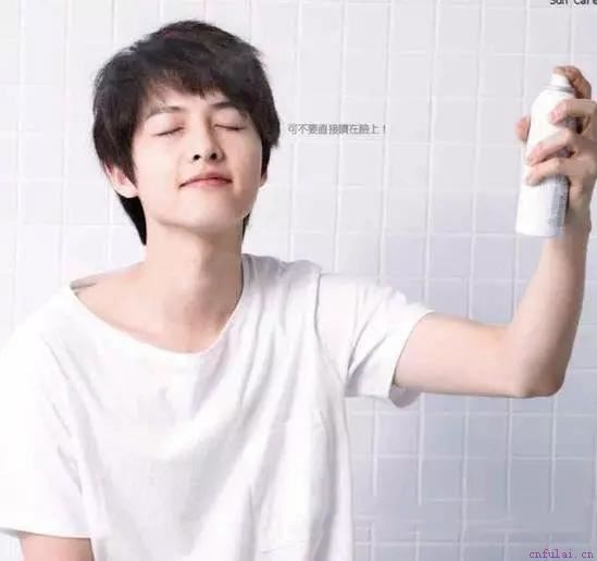 在喷喷雾的时候,我们直接喷在脸上就可以,最好是头部都(喷),然后你的手在打圆圈,这样喷上去的喷雾是比较均匀的。