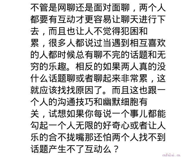 说话和写作一样,就拿写作来说,可能有的人觉得写一篇文章很吃力,而且到最后还词不达意,但是经常写多了,就会有不同的感觉,当你有了思路的时候,真的就像泉水一样喷涌而出。所以对于聊天,只要你勇敢的迈出那一步,多学多说,慢慢的你就会找到很多话题。