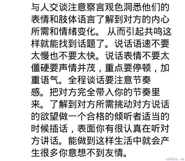 提到如何和别人聊天,我想应该是很多人的心病,对于一些内向的人来说,更是为难的事。可能对于一些健谈的人来说,聊天就是家常便饭,可是对于不爱说话的人来说,那就比登天还难。