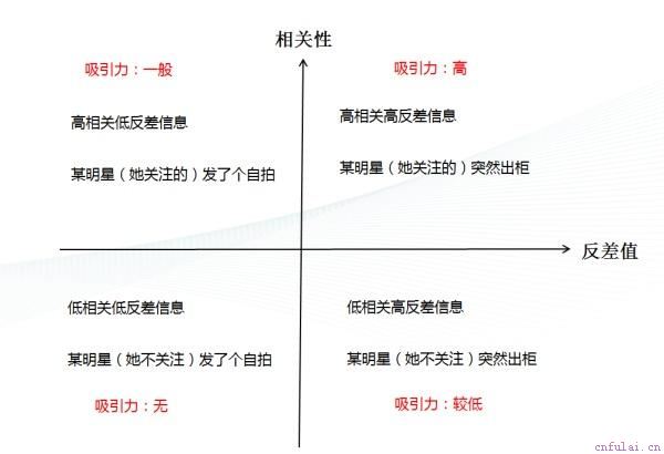 相关性和反差值越高的,越能引发对方兴趣,反之越无趣