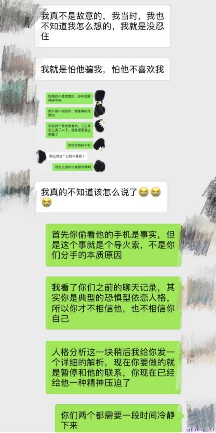所以我给佳佳的意见就是暂时断开和男友的联系,给自己、也给对方一个冷静期,一方面是为了缓和双方的负面情绪,另一方面也是让双方都有一段时间去梳理一下发生过的事情,防止双方感情再度恶化。