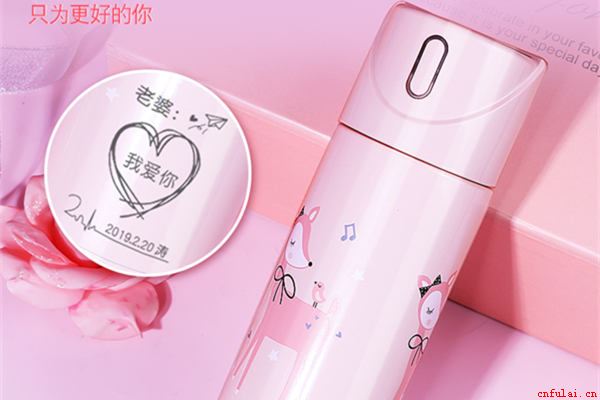 这是一款带有智能功能的保温杯,外观是一个小鹿寓意“一路有你”,粉红色可以让女生少女心爆棚,而且还可以在上面刻上自己想要说的话。
