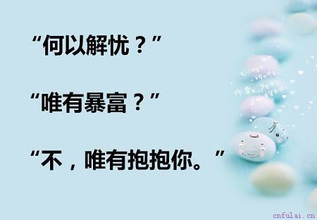 10、520表白情话给女生何以解忧,唯有暴富是一句很热门的话,相信很多人都有听过。但是如果你回答唯有抱抱你,那真的是撩人指数十级啊,分分钟俘获女神的心。