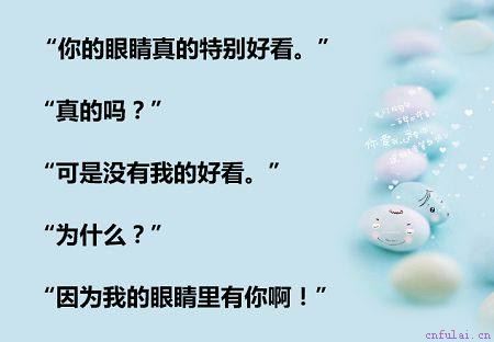 5、不管什么时候,自然地夸赞对方无疑是最好的交流话题,对方的心里会像吃了蜜一样甜。而且当你说出我的眼里有你的时候,相信很多女生心里都会有触动的。
