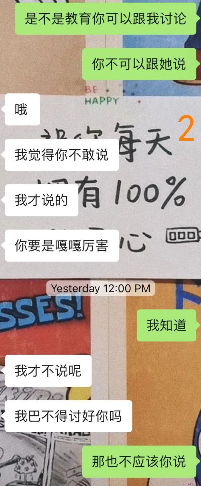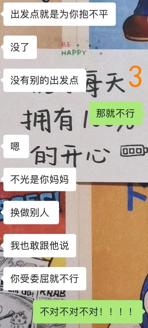 而且聊天记录里有一段话挺有意思的,他说:“出发点就是为你抱不平,不光是你妈妈,换做别人,我也敢跟他说,你受委屈就不行”。