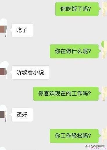 你好,你在哪上班啊,你工作是做什么的啊?认识你很高兴。这几乎是很多小白都经常犯的错误,只要聊天,绝对是查户口。从姓名、年龄、性别、爸爸妈妈、爷爷奶奶、外公外婆、家里养的狗、养的猫、家庭住址、在哪上班、收入多少、生活费多少……