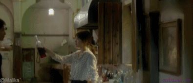 第二步近距离眼神杀,好好说着话呢,突然前倾身体来一个深情款款对视,乔妹脸上的表情说明了一切,心都要跳出来了啊喂!↓