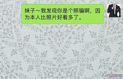 2.女生在现实中,都喜欢自拍,然后把图片美颜,让我们男生都觉得她漂亮。毕竟美女都喜欢听到别人夸她漂亮。但这个套路本意上也是赞美女生,但比较复杂,它是先说这个女生是一个照骗,多多少少有点贬义,然后后面又是夸赞她,这一来一去中就穿插了很多撩妹的技巧,这个套路也不像其他男生说“你真漂亮”,那么庸俗。