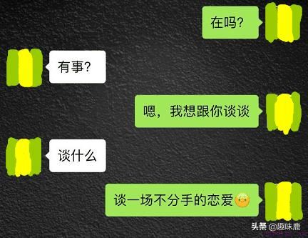 2.男生找女生谈谈事情,女生没想到原来是谈一场不分手的恋爱。着实让女生害羞,女生还能说什么呢!