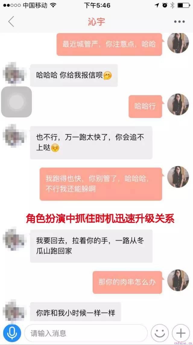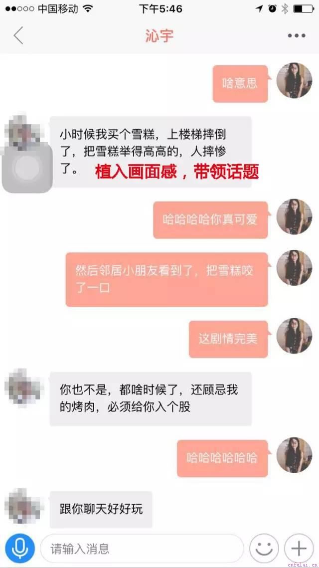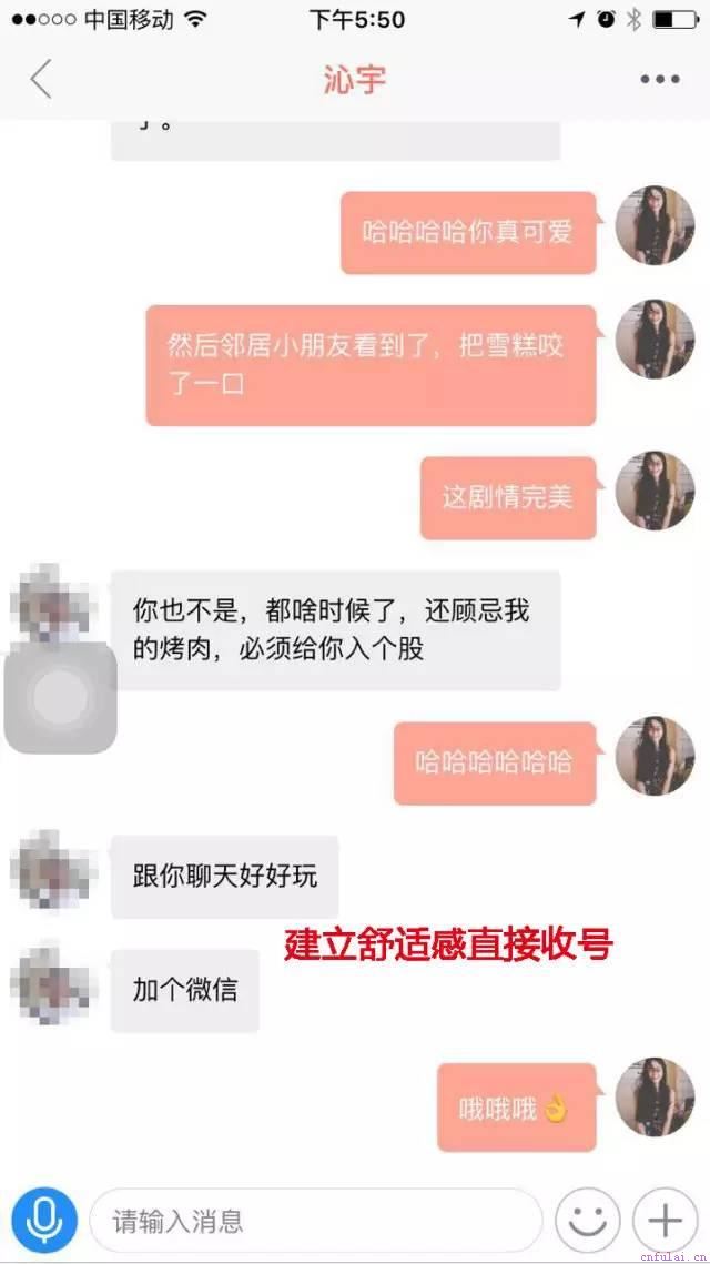 在角色扮演、植入画面感这个过程中与对方建立起了舒适感,这时候主动切断,及时跟对方交换微信进而转微信聊天,进一步巩固加深关系。