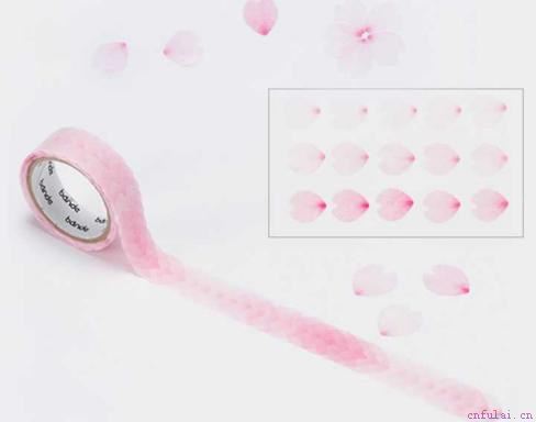 整条胶带都是由分节的胶贴拼成,这款樱花胶带由一片一片的樱花花瓣组成,甚至花瓣最后还可以拼成完整的樱花。