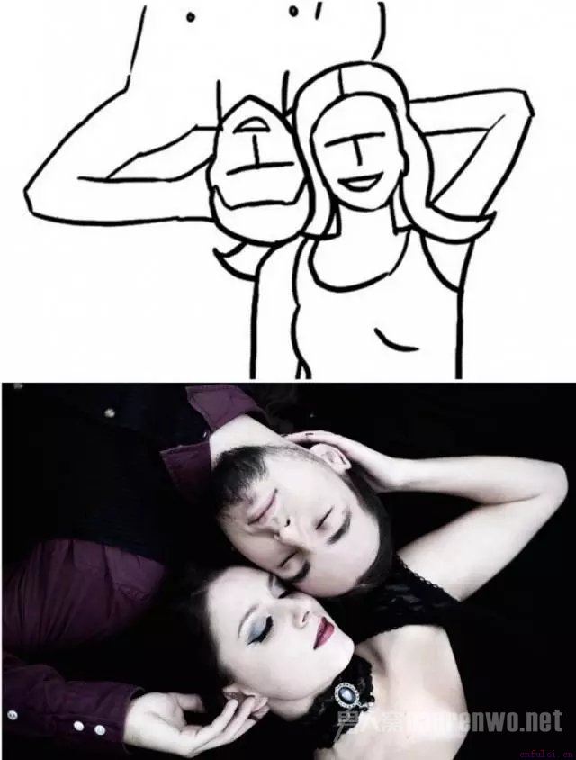 以相反方向躺下,眼神聚在一起