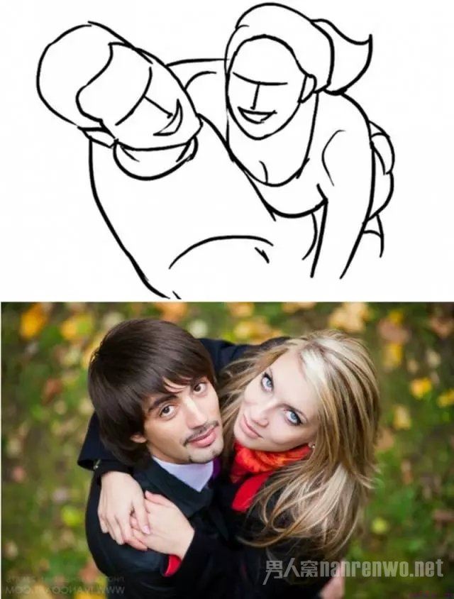 经典动作:女生从男背后搂住男生