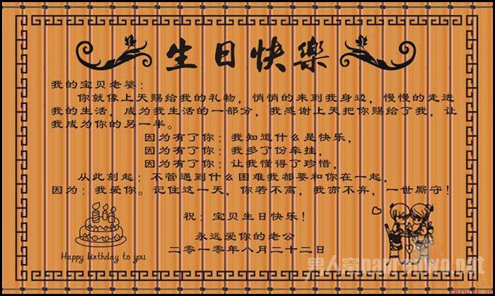 一个个性定制的竹简,一封感人肺腑的情书,一份诚挚的生日祝福,一个惊喜一点浪漫。在女朋友生日的时候,送上一份独一无二的生日礼物,相信她一定会非常感动的。