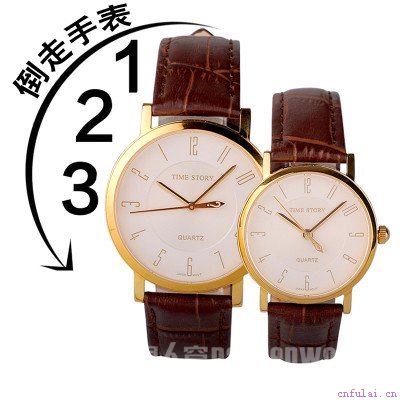 时光流逝,我依然爱你~!爱情,不是最初幸福的甜蜜,而是繁华褪尽依然不离不弃的心意;浪漫之巅,开始颠覆时空秩序,给你倒着走的时间视觉,找到那份曾经的心动和激情,让爱情永保活力。如此独特的创意手表,绝对让你在任何场合都成为瞩目的焦点,走在时尚的前端,感受不一样的时间流逝!