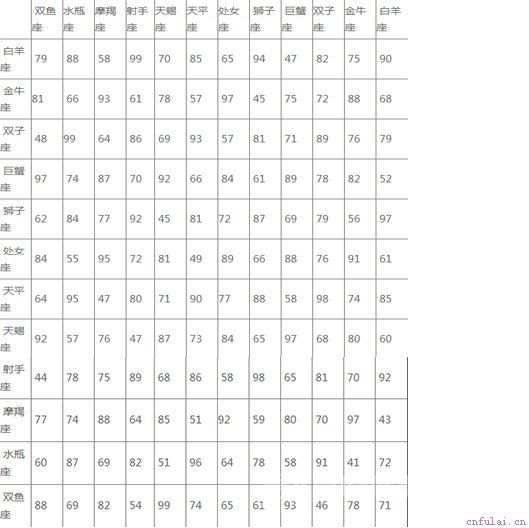 绝配:魔羯座孤独、忍耐的性格,加上半生的努力,比一般人晚发;所以必须寻找一位能相互合作又和蔼可亲的对象。如温和体贴富有同情心的处女座;永远年轻的金牛座;以及有耐心、殷实可靠同属魔羯座的人,都很相称。