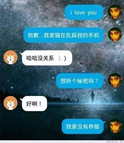 一般你表白的时候都是怎么说的?是拿着一束花单膝跪下,说我爱你?还是直接微信上表白?其实太直接的表白女生还是比较反感的,如果你真的想表白的话,可以用套路,先说一个我爱你,然后解释到:“不好意思,我家猫乱踩我手机”,接着再来一个大反转,我家没有猫