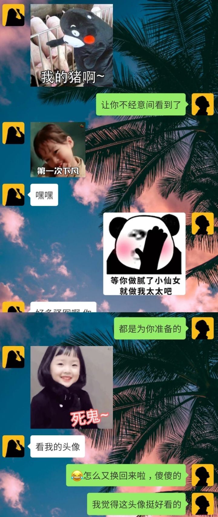 和练武一样,光有一身内力是不行的。聊天也是一样,虽说上面的素材都给你了,怎么在哄女朋友开心的过程中用的恰当是很关键的。具体怎么用,一言两语说不清楚,这里把我和我女朋友的日常聊天截图几张吧。大家可以参考下,平时灵活运用: