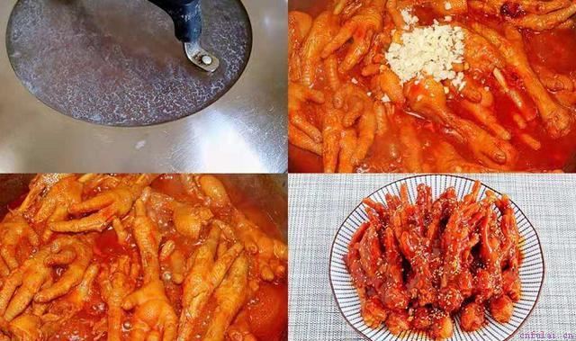 1⃣️下蒜的时候要冷油下,这样蒜不容易糊,下鸡爪以后翻炒时间不要过长,不然鸡爪会爆皮