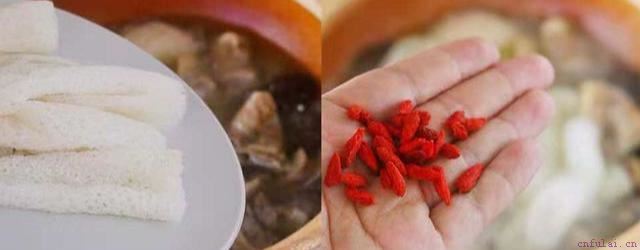 4⃣️1小时后,加入竹荪和枸杞,再炖10分钟,加入适量盐