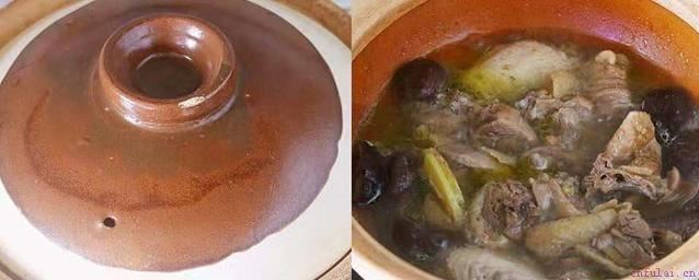 3⃣️砂锅中加入鸡肉,香菇,姜片,然后加入适量清水,大火煮开水后转小火盖上盖子慢炖1小时