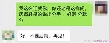每段感情都会产生各种各样的矛盾。我们之间也不是第一次吵架了。但是这却是我第一次听见小媛说分手,当时我真的很气愤,觉得她不珍惜我们的感情。又想到每次都是自己道歉,她还不依不饶。抱着怨气,那天夜里,我发了一条自认为很男人的微信给她。