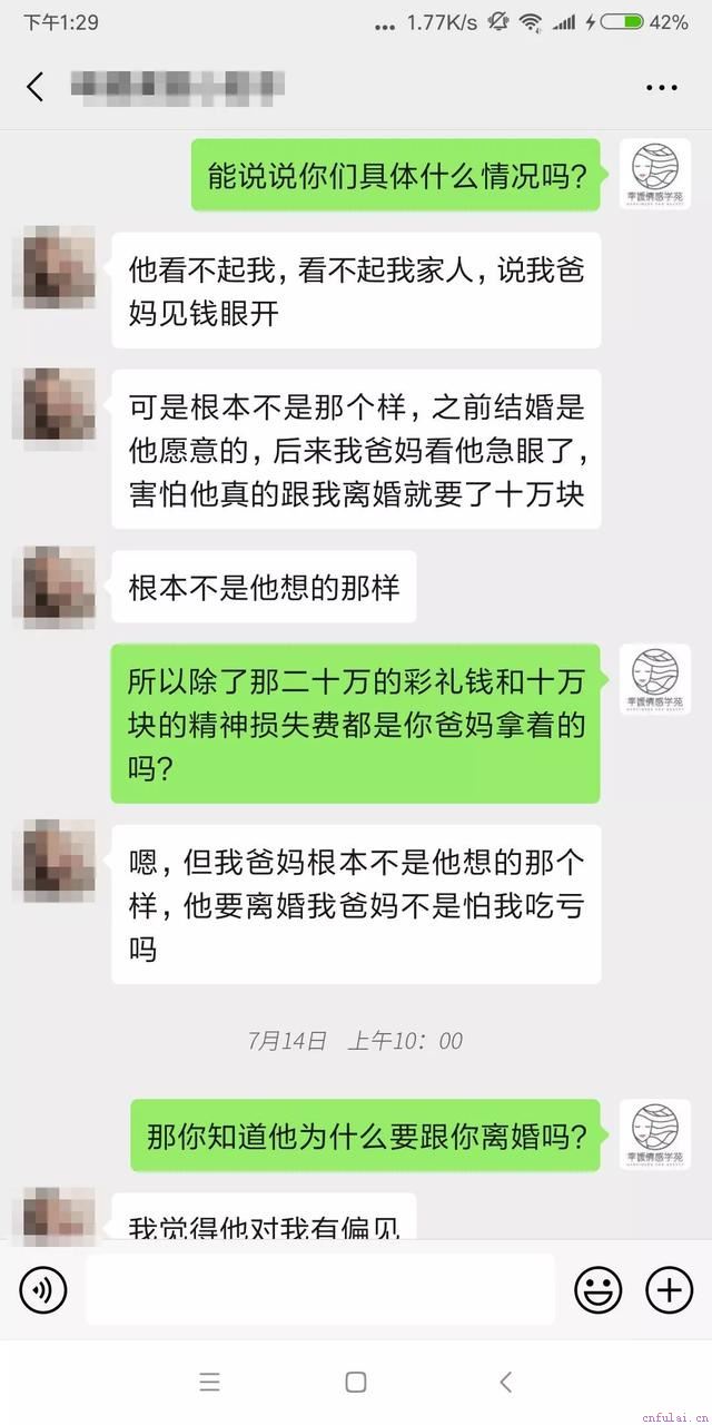 我心里很委屈,虽然知道要那二十万彩礼很不好,但那不是他主动给的吗?再说,是他巴巴的求着要结婚,现在又后悔了?
