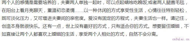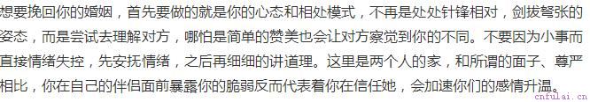 一段婚姻或者说一段感情,时间长了,难免会出现这样那样的问题,出现了问题大多数的人还是想去补救的,可是很多的人是不知道怎么去下手,怎么去挽回,感觉头大得很,于是有些人在苦苦寻求方法,而有些人则放弃了。这里有3个方法,或许对你有用,不管是感情或者婚姻出现了问题,还是想提前做好预防的都可以看一看。