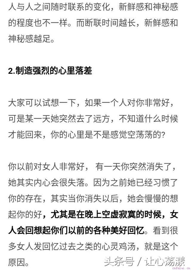其实让你不联系,消失不是让你放弃。这样做的目的是为了保住和她以后再交流、重新走进她生活的机会。只有能够再交流,才有挽回她的机会。既然你现在怎么说怎么做都没有好处,那不如不联系。其实这在兵法上来说叫缓兵之计,为以后重头再来留下机会。+