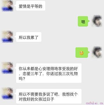 在这个截图的对话中,男生分手的原因是自己付出太多得到的回馈很少,