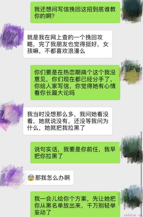 小浩发现女友打电话不接、发信息不回之后,又在网上看人家说什么打破僵局的“挽回信”,于是他也写了一封信给女友,洋洋洒洒几千字,把两个人之间的问题解释了一番,又在信中倾诉衷情,表达了自己深深的爱与不舍,希望女友能认真考虑再给自己一次机会。结果还是意料之中,女友根本没有回应只言片语,我猜,对方很有可能根本就没拆开这封信。