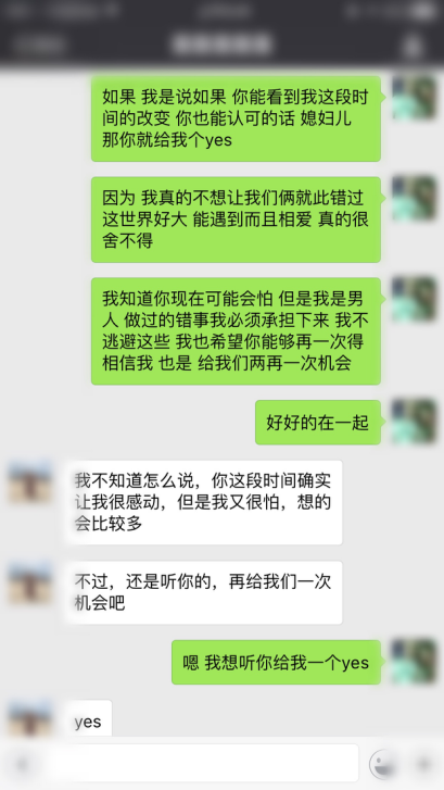 于是,又经过关键性的两次代聊,我们最终艰难的是和女生恢复了恋人关系。