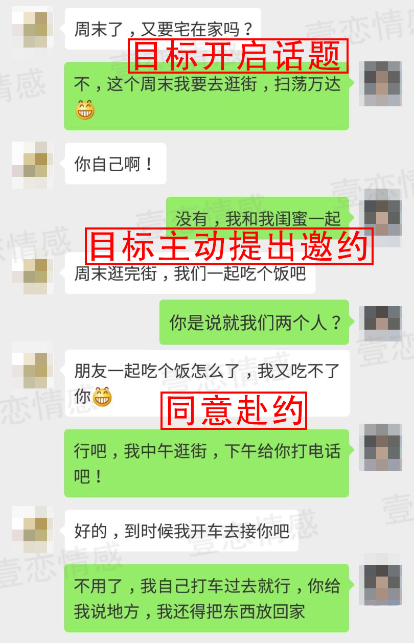 聚会结束时后,对方便陆续的主动找苏钰聊天,导师对苏钰一边辅导一边教学如何和对方聊天。经过导师数天的指导,苏钰已经和对方建立了稳固的亲密关系,不仅经常主动找话题与苏钰聊天,并且在苏钰冷落对方时,对方总会询问苏钰是否在忙,已经在对方的内心占据了较重的地位,最终向苏钰提出了邀约。