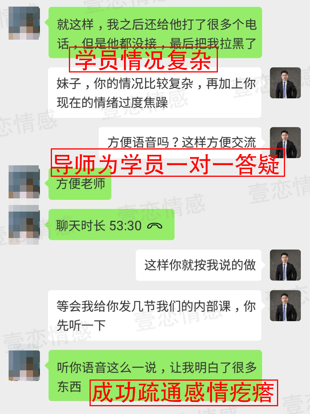 在挽回对方的同时,也是在挽回对方印象中的自己。这是有效的挽回方法,是要深深扎住脑海的思考方式。因为问题就像是一根针一样,你若是拔不出来,那么只能够扎入你的心房,对你们双方都不好。我们了解到学员的情况后,鉴于情况比较特殊,我们并没有立即去挽回,而是在挽回操作之前做出了许多准备工作。导师团队根据露露的情况,定制了一个专属方案,由导师跟露露进行了一次语音心理疏导,以及信心建设,心态调整。