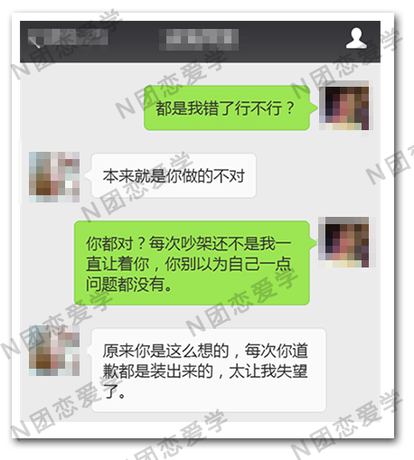 有时,我工作压力有些大,挺累的,也需要别人理解和体谅,而她却不能理解我的付出,还总是因为一点小事就找我吵架,让我觉得特别累,也有些烦,有时控制不住脾气时,也会吼她几句。她指责我情绪频繁失控,对我们之间的关系也特别失望。这样,我们从小吵小闹变成了大吵大闹,甚至持续一段时间的冷战,几乎每次都是以我的认错道歉而收场。我们的关系就在这一次次的矛盾、吵闹、冷战中,消耗着彼此的感情,关系也越来越紧张