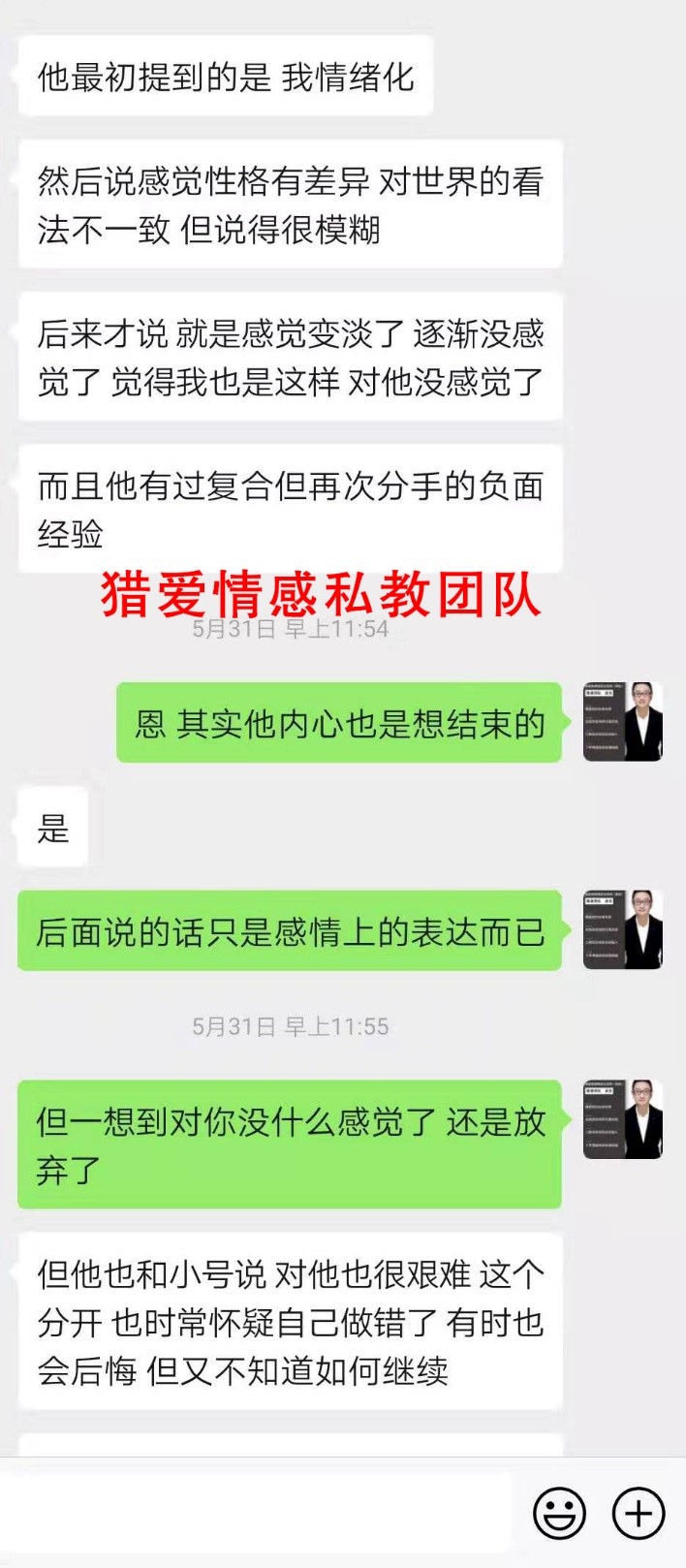 我们是猎爱情感,已帮助上千名学员成功得到真爱。如果你现在正在面临情感困惑,我们会根据你们的交往情况,为你做一个全面的分析,告诉你,如何操作才能搞定你的男神,还可以教你如何有效的去挽回,以及帮助你找到经营感情的正确方法。怎么操作才能挽回对方?我们一起来看个案例。