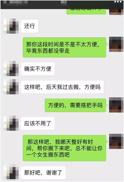 陈凯听从导师安排继续发送朋友圈,就这样又过去了一周,根据陈凯的反馈,两人已经由细微的点赞发展到互相评论了,甚至有时还会在评论区互动。我们见时机成熟,让陈凯以询问何时搬走行李为由,打开两人线上聊天的窗口,再顺势发展成线下见面。