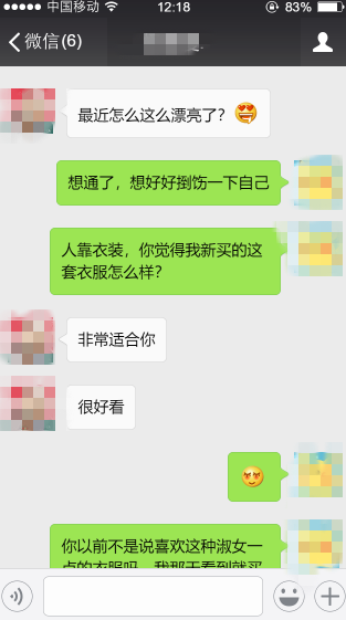 我想了想,觉得很有道理。其实对男人来说,也是这个道理。如果能在外貌上吸引到他,当发生争吵的时候,男人也会心软,会主动来哄女人,跟女人求和。我恍然大悟,马上找了一家知名的发型机构重新改变了发型,并且开始关注网络上的美妆博主,学习化妆。短短几天之后,改变非常大。看到我发的自拍,咨询师们都大吃一惊。说我改变后形象提升了好几个档次,一点儿都不比明星差。他们让我把这张自拍照发到了朋友圈里,果然,陈旭马上就发来了消息。