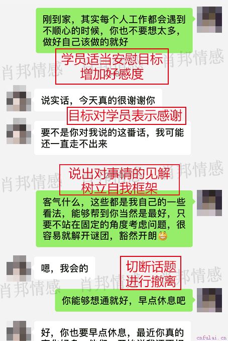 针对两人分手的深层原因,在之后一周的断联期内(冷冻关系不再与对方联系),咨询师安排了《自我提升》和《聊天大师》等服务,帮他提升自身价值,学会沟通技巧,并加强价值展示,为后期挽回做铺垫。