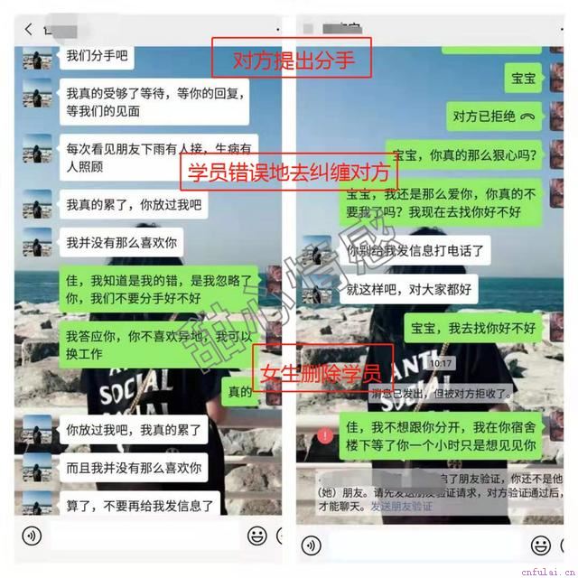 这一刻,我真的不知所措。不知道问题究竟出在哪里,也不知道该怎么办。在乐风尝试了借手机给对方发信息,打电话,在宿舍楼下蹲守等所有的挽回方式,却让对方越走越远之后,乐风找到了导师,想让导师去帮助挽回。