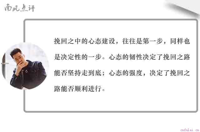 后来,我想要去挽回他,可是一来放不下女孩子的矜持,二来我也不知道该怎么去挽回。我在网上看了很多关于挽回男友的文章,看到了南风咨询师的一篇干货文,里面很多问题写的和我很像,最终你我鼓起勇气添加了南风咨询师的微信,和南风咨询师进行了一个深度沟通,最终决定成为南风团队的高端定制学员。