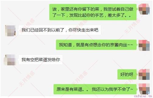 眼花缭乱的看起来一套套的话术,网络上太多了,当你看了很多专业挽回的团队的话术,是不是非常的奇怪,对方竟然如此的配合?那只不过是有些团队自己和自己聊天罢了。真正的挽回聊天是这样的,下面是我们的学员最开始挽回的聊天图片: