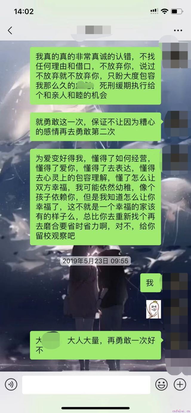 如果把挽回看作是烹饪一道料理,那么聊天就是加入这道料理中的各种调味品。什么时候加,加入多少量,各种调料的比例是多少,都需要很多讲究。很多姑娘呢,一个劲儿给前任发很多信息,整个截图中全是自己说的,关键是还动不动向对方示爱、道歉认错。