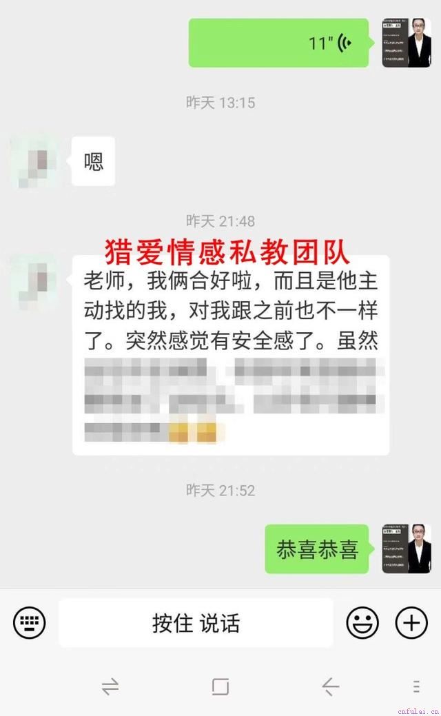 大家好,我是猎爱情感的咨询师麦克,是您爱情征途上的领航员。是小鹿平台特约咨询师,国家婚姻情感咨询师,情感危机处理专家,专注情感领域10年之久,在我们团队的帮助下已有上万名学员成功挽回了真爱和修复了婚姻,走向新的人生。我们可以帮助您解决以下问题:挽回真爱、修复婚姻、狙击真爱。
