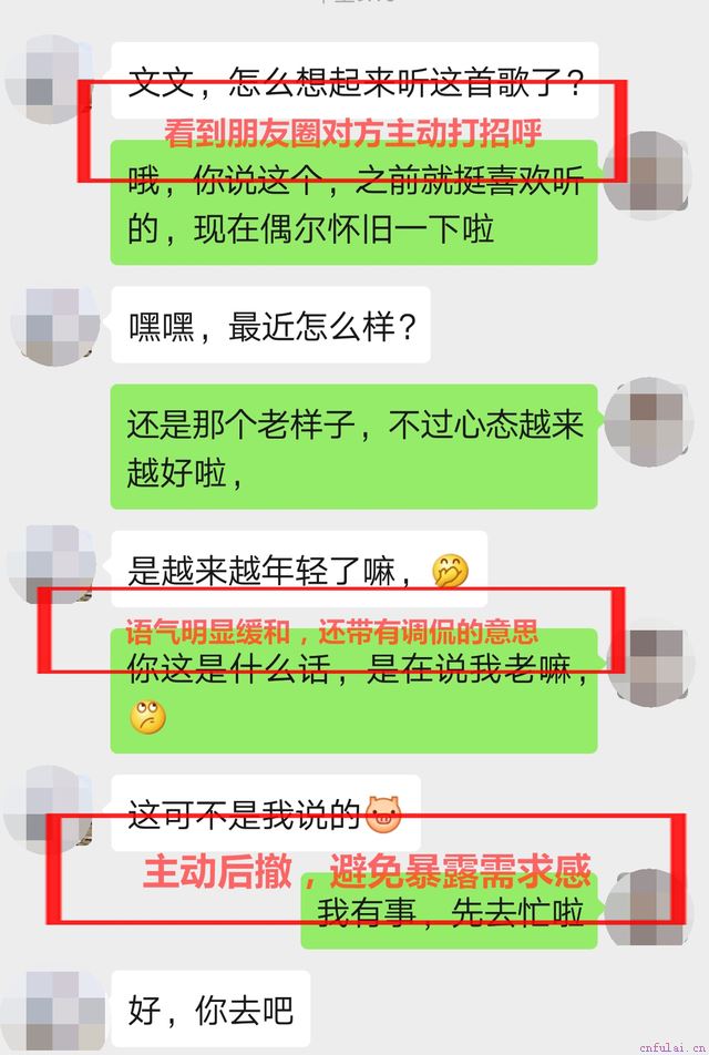 当天挽回上,王文文就发了一条朋友圈:同样的一首歌,为什么听着感觉确实如此的不一样,可能是心态不一样了吧。王文文的朋友圈,是属于和张明的恋爱回忆,当时两个人最喜欢的就是听这首歌了,经常拿出手机,靠在一起,醉心于歌中。果然,没过多久,对方就过来点赞,还主动找文文聊天,问她的近况。
