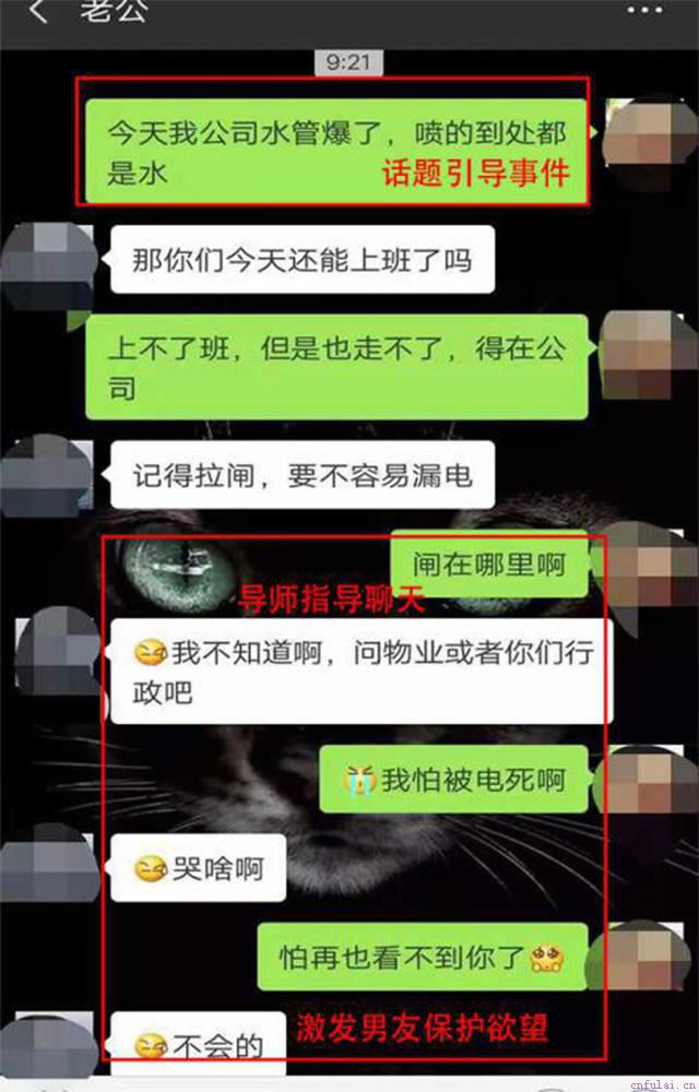 事件话题顾名思义,就是根据某件事情的发生而引起的话题,由于发生的事件一般具有讨论性,而大多数人对于具有讨论性的事情都比较有探索的欲望。不过运用这类技巧需要注意的一点是,千万不要较真,聊天的目的是为了让男友对你刮目相看,虽然有争论性,但是并不一定要真的争谁对谁错。紫米在接受这一培训后,对佳新咨询师说自己的脾气有时候真的会较真,因此咨询师让紫米对男友在微信上运用这一技巧的时候,稍有变差就问咨询师意见。