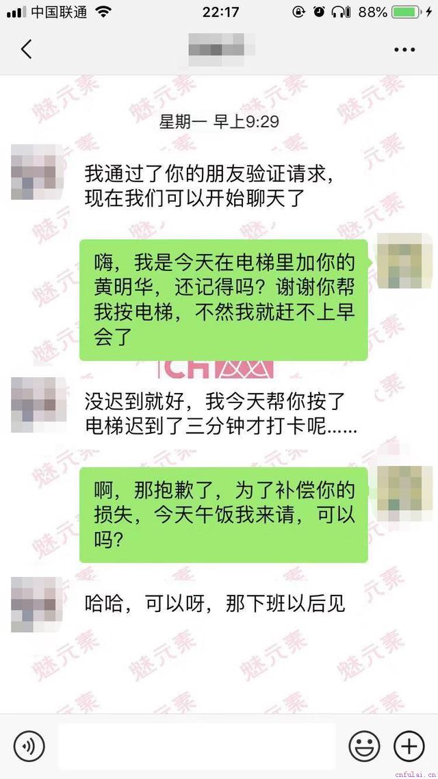 我叫黄明华,今年27岁,一直是单身状态。我是一个苦逼的程序员,同事清一色都是汉子,平时生活两点一线,基本没有和女生交流的机会。偶然的一次机会,我遇到了喜欢的女人——诗雨。有一次我起床晚了,飞奔到公司楼下的时候看到电梯门马上要关上了。本来以为只能等下一趟了,谁知此时电梯门缓缓打开,映入眼帘的是一位身穿职业装,面容姣好的姑娘。我连连道谢,她也向我回以微笑。当时站在她的身旁,闻到她头发里散发出来的香味,以及举手投足之间的优雅,我深深地迷上了她。于是我鼓起勇气上去搭讪:女士你好,我是XX公司的程序员,我叫黄明华,想和你交个朋友,可是我忘了带名片,可不可以加个好友?说着就拿出手机翻到二维码的界面,她看穿了我的小伎俩,也大方地加了我的微信。回到公司以后,我向她表示了感谢,开启了第一次聊天。