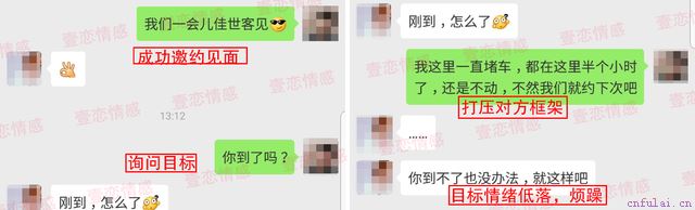 目前的关系相当于朋友,频繁的发信息会暴露自己的强目的性,只有不引起对方戒心,才可以润物无声的入侵她的生活。在不和她直接联系的时候,我们通过朋友圈冷互动,偶尔更改方式和她的朋友打的火热,总之不断的在刷存在感,让自己各种出现在她的生活里。我们必须让目标踏实的看到学员的改变,从而改变印象,达到挽回的目的。经过反复的设计推敲,为学员设计了一整套约会流程,并且多次演练聊天场景,约会的穿着、场景、聊天的话题、肢体接触的分寸,是否转场等等。